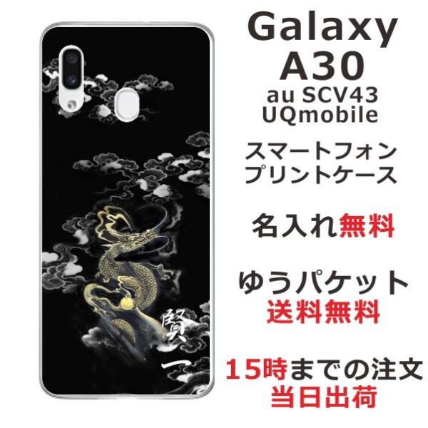Galaxy A30 ケース SCV43 ギャラクシーA30 カバー らふら 名入れ 和柄 漆黒雲海龍