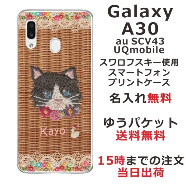 Galaxy A30 ケース SCV43 ギャラクシーA30 カバー らふら 名入れ 籐猫黒