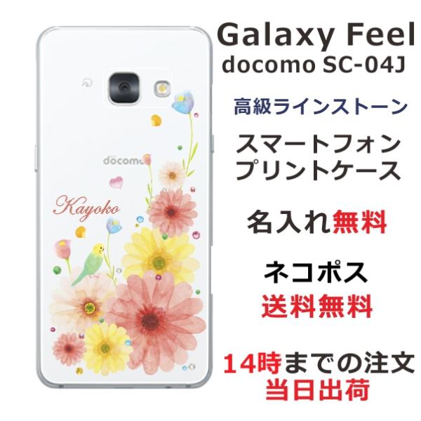 Galaxy Feel ケース SC-04J ギャラクシーフィール カバー ラインストーン かわいい らふら 名入れ ふんわりフラワー インコ