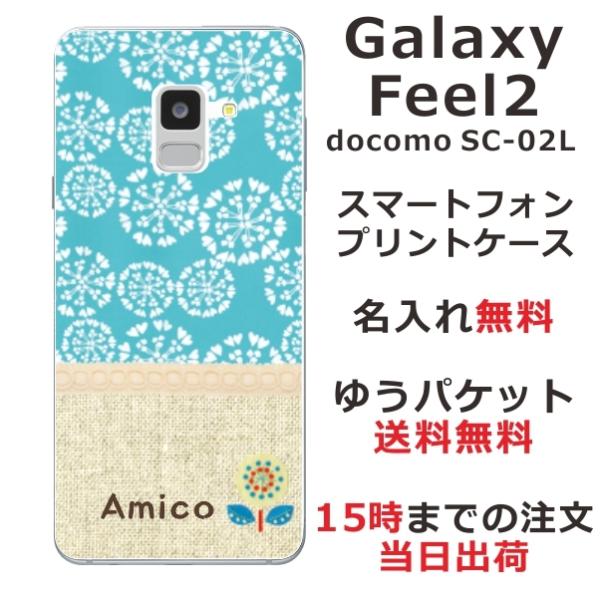 Galaxy Feel2 ケース SC-02L ギャラクシーフィール2 カバー らふら 名入れ 北欧デザイン フラワー ブルー