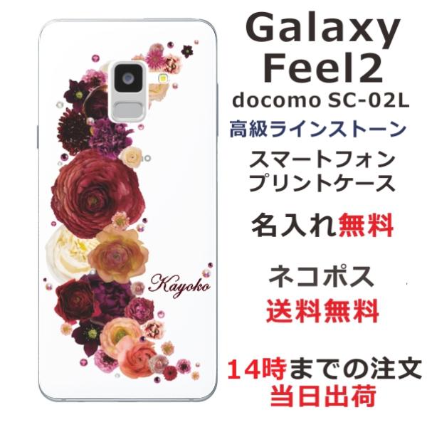 Galaxy Feel2 ケース SC-02L ギャラクシーフィール2 カバー ラインストーン かわいい フラワー 花柄 らふら 名入れ 押し花風 クレッシェンドレッド