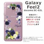 Galaxy Feel2 ケース SC-02L ギャラクシーフィール2 カバー ラインストーン かわいい フラワー 花柄 らふら 名入れ 押し花風 ブルーアレンジ