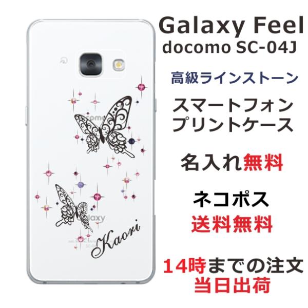 Galaxy Feel ケース SC-04J ギャラクシーフィール カバー ラインストーン かわいい らふら 名入れ バタフライ