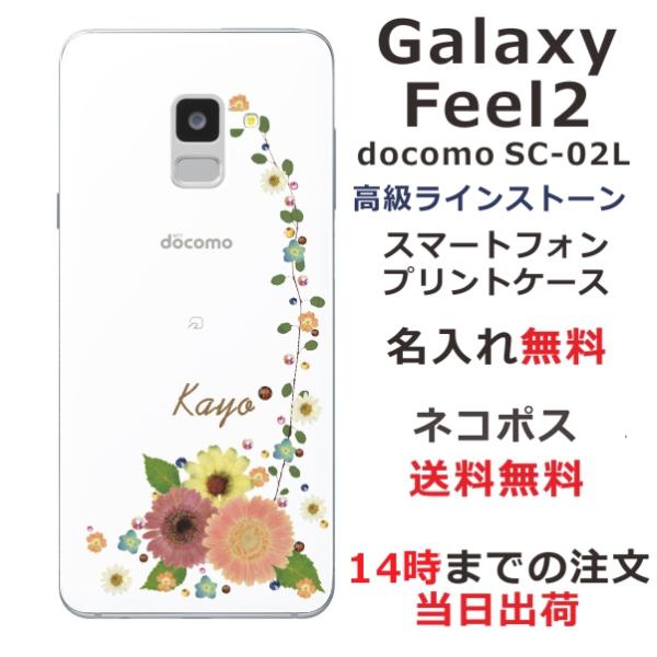 Galaxy Feel2 ケース SC-02L ギャラクシーフィール2 カバー ラインストーン かわいい フラワー 花柄 らふら 名入れ 押し花風 パステル アイビー