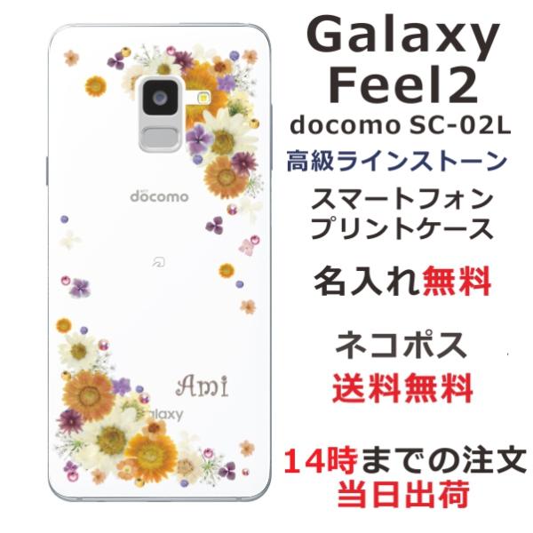Galaxy Feel2 ケース SC-02L ギャラクシーフィール2 カバー ラインストーン かわいい フラワー 花柄 らふら 名入れ 押し花風 アンティークフラワー