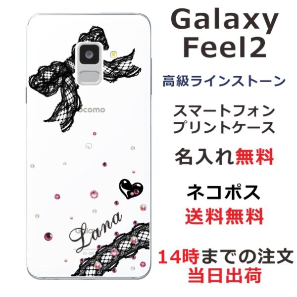 Galaxy Feel2 ケース SC-02L ギャラクシーフィール2 カバー ラインストーン かわいい らふら 名入れ レースリボン