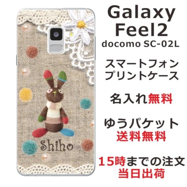 Galaxy Feel2 ケース SC-02L ギャラクシーフィール2 カバー らふら 名入れ コットンレース風 うさぎ