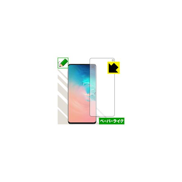 - ●対応機種 : Samsung Galaxy S10 (docomo SC-03L / au SCV41 / 楽天モバイル)●製品内容 : 前面用1枚 ※画面での指紋認証に対応しています。●※この機器は周辺部が曲面となったラウンド仕様のため、保護フィルムを端まで貼ることができません。そのため、表示部分よりも保護フィルムが小さくなっています。ご了承の上ご購入ください。 ※この製品の前面の横幅は約61mmです。●紙のような描き心地を実現する『ペーパーライク保護フィルム』です。表面はアンチグレア(反射防止)タイプなので、光の反射や映り込みを抑えます。※本製品はフィルムの表面を特殊加工し、スタイラス等で筆記する際に抵抗を持たせるようにしております。そのため、タブレットのガラス面に直接描く場合に比べ、ペン先の摩耗が大きくなります。あらかじめご了承ください。●安心の国産素材を使用。日本国内の自社工場で製造し出荷しています。【ポスト投函送料無料】商品は【ポスト投函発送 (追跡可能メール便)】で発送します。お急ぎ、配達日時を指定されたい方は以下のクーポンを同時購入ください。【お急ぎ便クーポン】 プラス110円(税込)で速達扱いでの発送。お届けはポストへの投函となります。【配達日時指定クーポン】 プラス550円(税込)で配達日時を指定し、宅配便で発送させていただきます。【お急ぎ便クーポン】はこちらをクリック【配達日時指定クーポン】はこちらをクリック 板状タブレットの場合は紙を敷いて使用されていたイラストレーターさんや漫画家さんも多いようですが、液晶タブレットの場合は紙を敷くわけにもいかず、ペンの滑りなど気になる方もいらっしゃると思います。 このフィルムは表面の特殊加工により、紙に書いているような「カリカリというペンの感触」と描き心地を実現しました。 液晶タブレットのガラス面にペンで書く際の「つるつるした感触」を改善したい方におすすめのフィルムです。 ※本製品はフィルムの表面を特殊加工し、スタイラス等で筆記する際に抵抗を持たせるようにしております。そのため、タブレットのガラス面に直接描く場合に比べ、ペン先の摩耗が大きくなります。また、ペン先の素材や硬さなどで描く感覚が変わる場合があります。あらかじめご了承ください。 表面に微細な凹凸を作ることにより、外光を乱反射させギラツキを抑える「アンチグレア加工」がされております。 屋外での太陽光の映り込み、屋内でも蛍光灯などの映り込みが気になるシーンが多い方におすすめです。 接着面は気泡の入りにくい特殊な自己吸着タイプです。素材に柔軟性があり、貼り付け作業も簡単にできます。また、はがすときにガラス製フィルムのように割れてしまうことはありません。 貼り直しが何度でもできるので、正しい位置へ貼り付けられるまでやり直すことができます。 高品質の素材を使用。日本国内の弊社工場で加工している Made in Japan です。 使用上の注意 ●本製品は機器の画面をキズなどから保護するフィルムです。他の目的にはご使用にならないでください。 ●本製品は液晶保護および機器本体を完全に保護することを保証するものではありません。機器の破損、損傷、故障、その他損害につきましては一切の責任を負いかねます。 ●製品の性質上、画面操作の反応が変化したり、表示等が変化して見える場合がございます。 ●貼り付け作業時の失敗(位置ズレ、汚れ、ゆがみ、折れ、気泡など)および取り外し作業時の破損、損傷などについては、一切の責任を負いかねます。 ●水に濡れた状態でのご使用は吸着力の低下などにより、保護フィルムがはがれてしまう場合がございます。防水対応の機器でご使用の場合はご注意ください。 ●アルコール類やその他薬剤を本製品に付着させないでください。表面のコーティングや吸着面が変質するおそれがあります。 ●品質向上のため、仕様などを予告なく変更する場合がございますので、予めご了承ください。