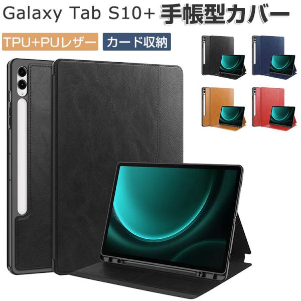 - Galaxy Tab S10+ ケース 耐衝撃 カバー TPU+PUレザー おしゃれ ケース 持ちやすい 汚れ防止 カード収納 スタンド機能 オートスリープ機能 Sペン収納充電に対応 お洒落な タブレットケース カッコいい Samsung サムスン ギャラクシー タブS10+ 12.4インチ 手帳型カバー