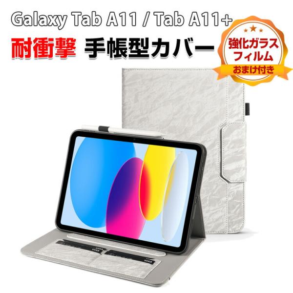 Galaxy Tab A11 8.7インチ 用の持ちやすい スタンド機能 カード収納 Sペン収納 Galaxy Tab A11+ 11ケース 耐衝撃 手帳型カバー 強化ガラスフィルム
