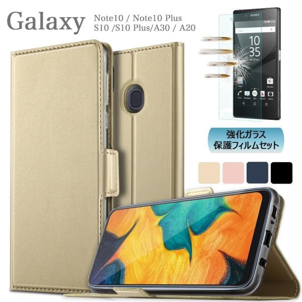 強化ガラス付 ギャラクシー ケース カバー Galaxy Note10 Note10Plus S10 S10Plus A30 専用ケース 10 plus S10+ a30 カード収納 手帳型 マグネット内蔵