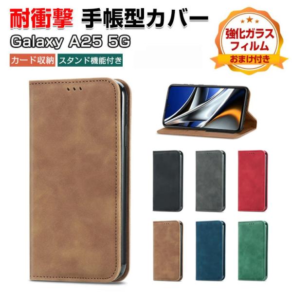 - サムスン Galaxy A25 5G ケース カバー ギャラクシー A25 5G SC-53F/SCG33 カバー 手帳型 財布型 TPU&PUレザー おしゃれ 汚れ防止 スタンド機能 便利 ストラップホール付き カード収納 カッコいい 人気 スマホ 手帳型カバー CASE 強化ガラスフィルム おまけ付き