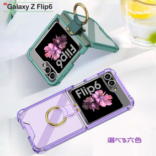 Galaxy Z Flip6 ケース 四つ角にエアバッグ 耐衝撃 折り畳み式 落下防止指リング サブディスプレイガラスフィルム付き 爆買