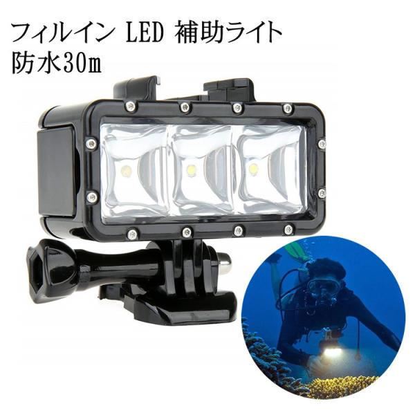フィルイン LED 補助ライト 3モード 5500K 防水30m 取外可 USBポート マウントベース 3フィルタ GoPro Hero Xiaomi Yi 4K用 Canon Nikon Sony
