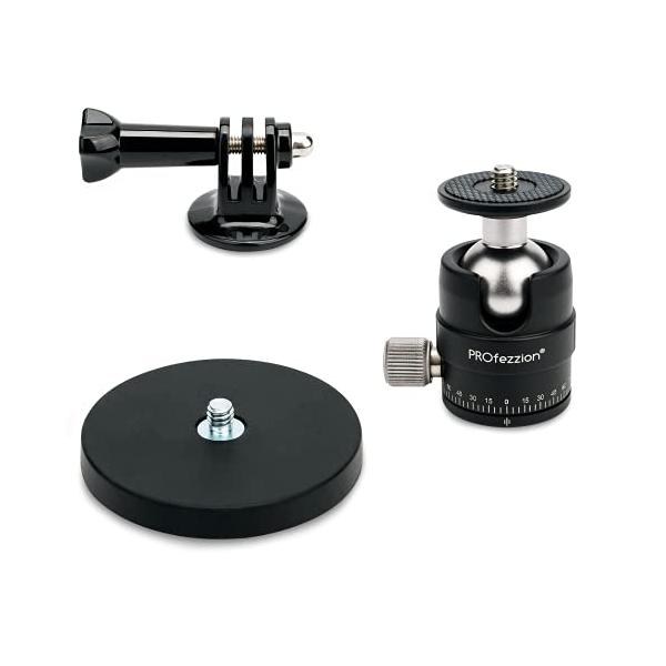 PROfezzion カメラ磁気スタンド セット カメラ用 マグネット スタンド + 雲台 + Goproホルダー マグネットベース 小型 自由