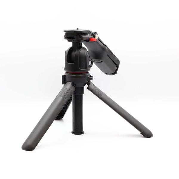 ビデオ雲台が付属しており、ビデオカメラの操作も簡単に行えます。また、ビデオ雲台のグリップはスマホホルダーに変形可能で、幅約5.6cm〜9.4cmのスマートフォンをしっかりと固定します。
