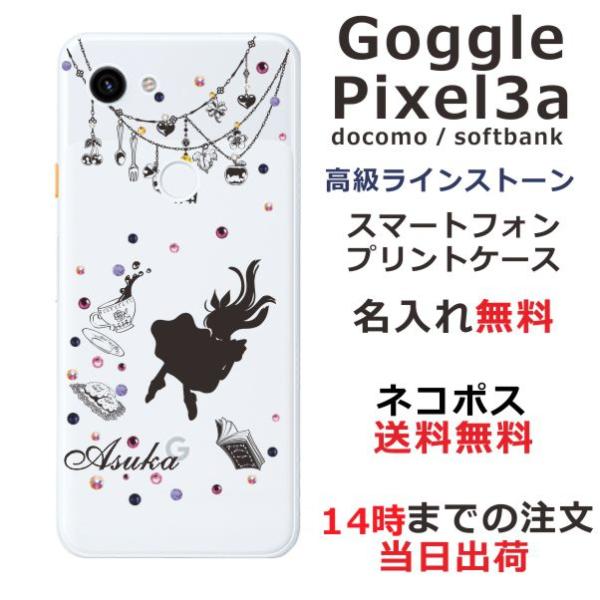 Google Pixel3a ケース グーグルピクセル3a カバー ラインストーン かわいい らふら 名入れ アリス