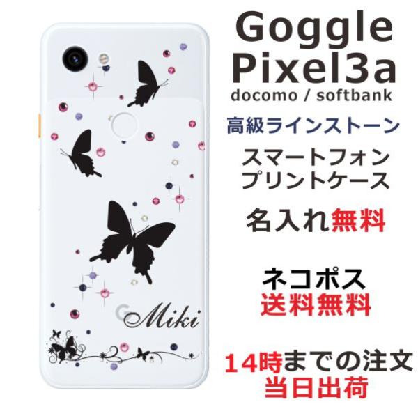 Google Pixel3a ケース グーグルピクセル3a カバー ラインストーン かわいい らふら 名入れ スリー バタフライ