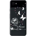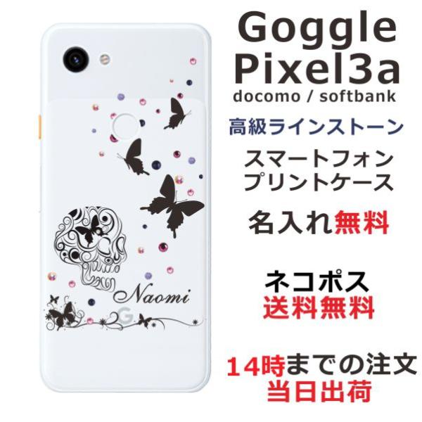 Google Pixel3a ケース グーグルピクセル3a カバー ラインストーン かわいい らふら 名入れ スカルバタフライ