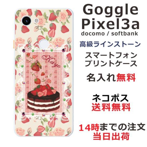 Google Pixel3a ケース グーグルピクセル3a カバー ラインストーン かわいい らふら 名入れ ストロベリー ケーキ