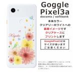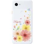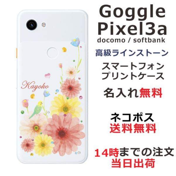 Google Pixel3a ケース グーグルピクセル3a カバー ラインストーン かわいい らふら 名入れ ふんわりフラワーとインコ