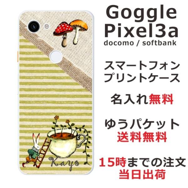 Google Pixel3a ケース グーグルピクセル3a カバー らふら 名入れ ティーカップ うさぎ