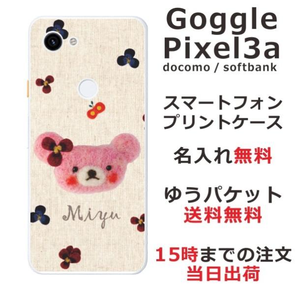 Google Pixel3a ケース グーグルピクセル3a カバー らふら 名入れ フェルト風 ベア ピンク