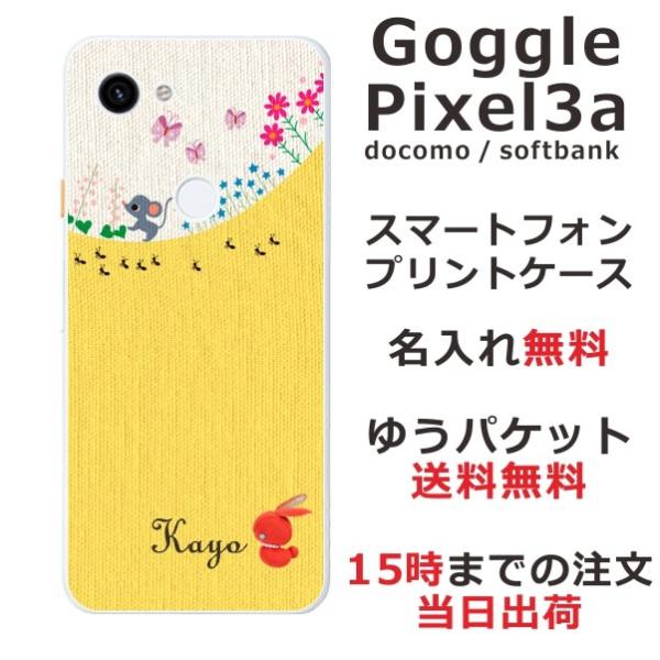 Google Pixel3a ケース グーグルピクセル3a カバー らふら 名入れ ネズミのお散歩