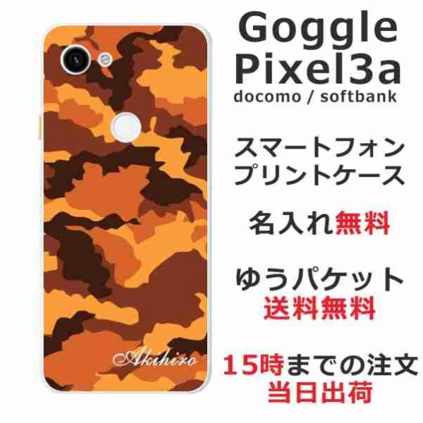 Google Pixel3a ケース グーグルピクセル3a カバー らふら 名入れ 迷彩 ブラウン