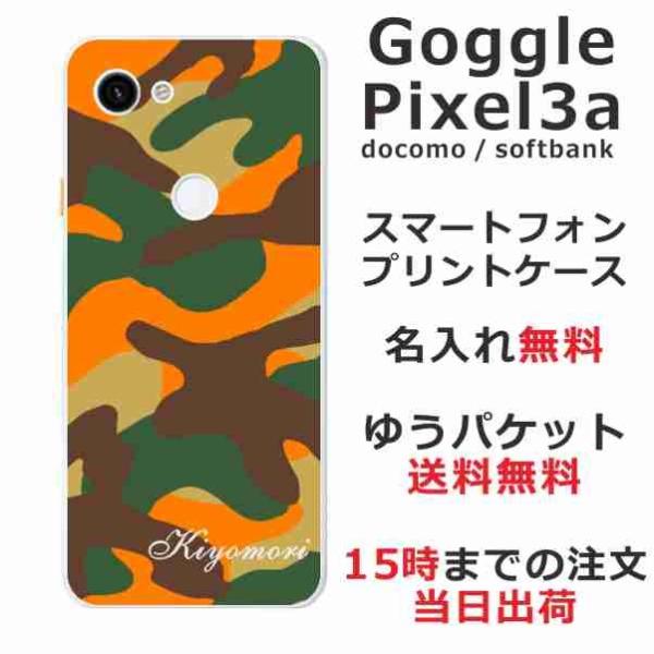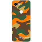 Google Pixel3a ケース グーグルピクセル3a カバー らふら 名入れ 迷彩 オレンジ