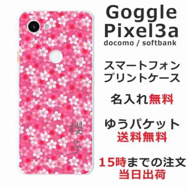 Google Pixel3a ケース グーグルピクセル3a カバー らふら 名入れ 桜ピンク