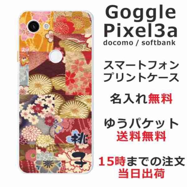Google Pixel3a ケース グーグルピクセル3a カバー らふら 名入れ 着物パッチワーク ピンク