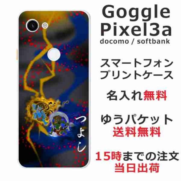 Google Pixel3a ケース グーグルピクセル3a カバー らふら 名入れ 風神雷神
