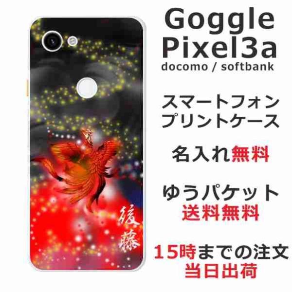 Google Pixel3a ケース グーグルピクセル3a カバー らふら 名入れ 鳳凰赤