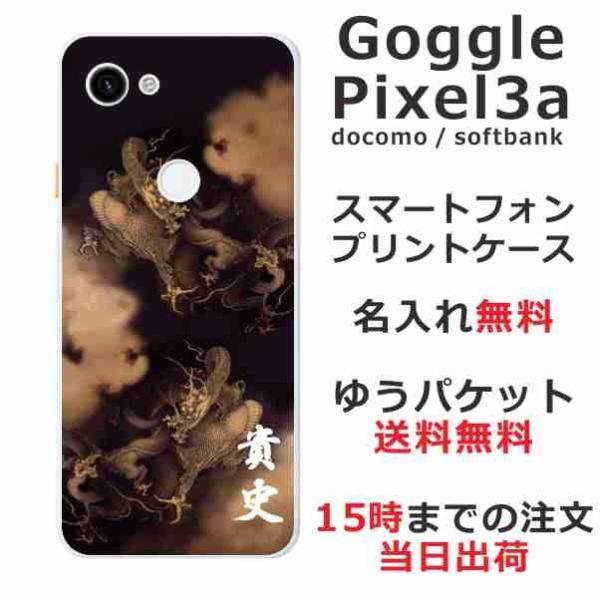 Google Pixel3a ケース グーグルピクセル3a カバー らふら 名入れ 昇龍セピア
