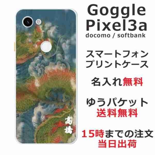 Google Pixel3a ケース グーグルピクセル3a カバー らふら 名入れ 昇龍碧