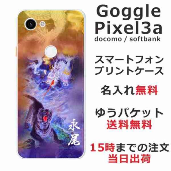Google Pixel3a ケース グーグルピクセル3a カバー らふら 名入れ 龍虎蒼橙