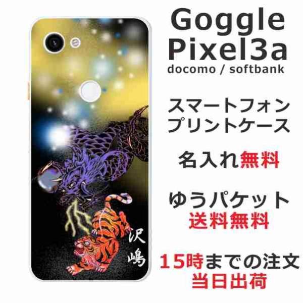 Google Pixel3a ケース グーグルピクセル3a カバー らふら 名入れ 虎龍
