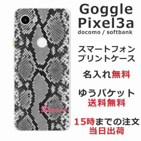 Google Pixel3a ケース グーグルピクセル3a カバー らふら 名入れ へび柄ブラック