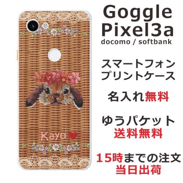 Google Pixel3a ケース グーグルピクセル3a カバー らふら 名入れ 籐 うさぎ