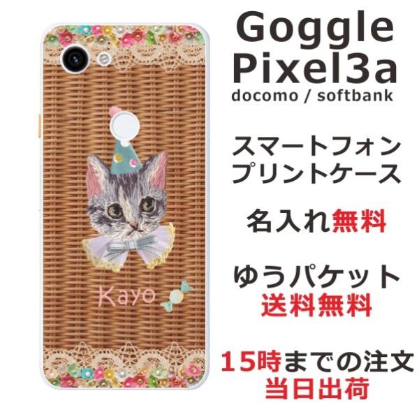 Google Pixel3a ケース グーグルピクセル3a カバー らふら 名入れ 籐 猫白