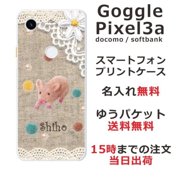 Google Pixel3a ケース グーグルピクセル3a カバー らふら 名入れ コットンレース風ブタ