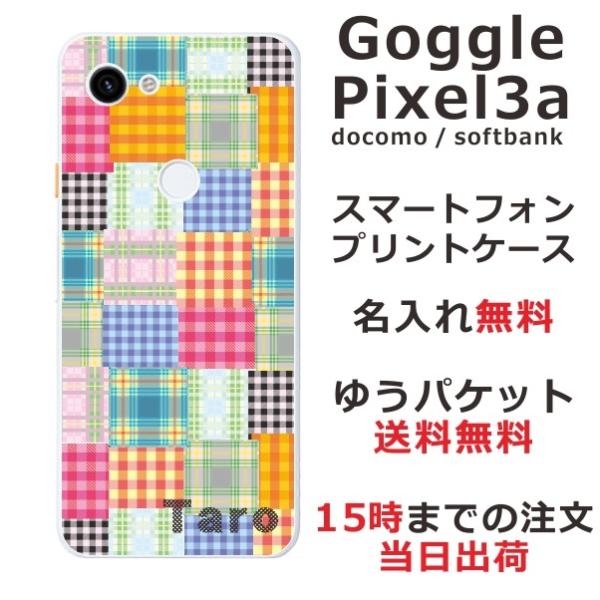 Google Pixel3a ケース グーグルピクセル3a カバー らふら 名入れ カラフル チェック