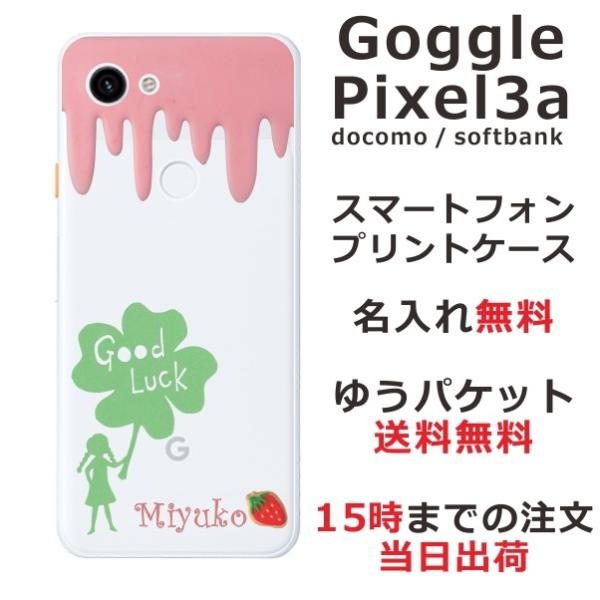 Google Pixel3a ケース グーグルピクセル3a カバー らふら 名入れ クローバー グッドラック