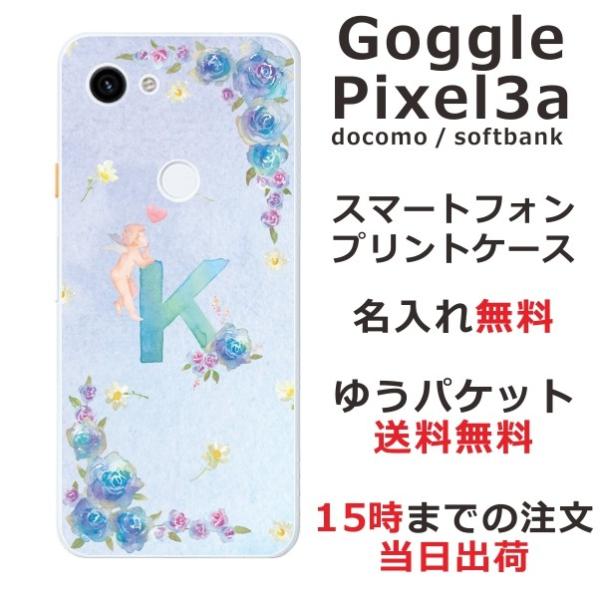 Google Pixel3a ケース グーグルピクセル3a カバー らふら 名入れ イニシャルエンジェル ライトブルー