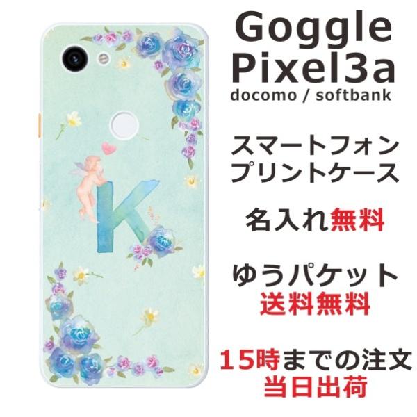 Google Pixel3a ケース グーグルピクセル3a カバー らふら 名入れ イニシャルエンジェル ライトグリーン