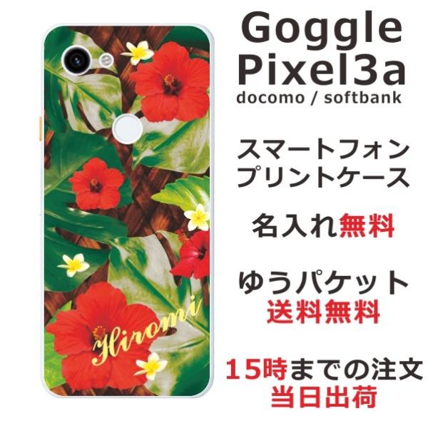 Google Pixel3a ケース グーグルピクセル3a カバー らふら 名入れ ハワイアン ハイビスカス