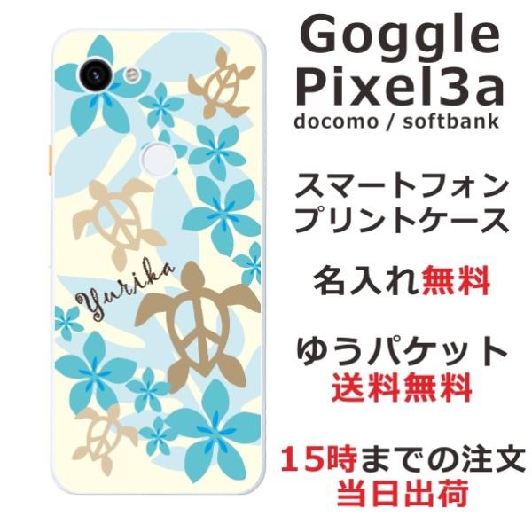 Google Pixel3a ケース グーグルピクセル3a カバー らふら 名入れ ハワイアン ブルーホヌ