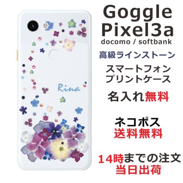 Google Pixel3a ケース グーグルピクセル3a カバー ラインストーン かわいい フラワー 花柄 らふら 名入れ 押し花風 デコレーション パープル