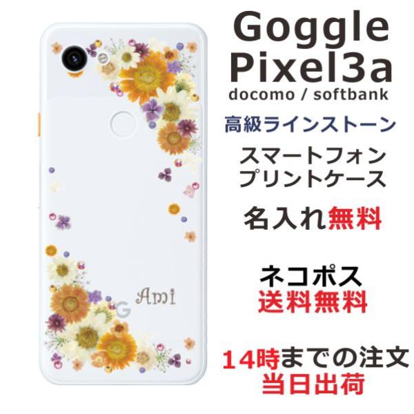 Google Pixel3a ケース グーグルピクセル3a カバー ラインストーン かわいい フラワー 花柄 らふら 名入れ 押し花風 アンティークフラワー